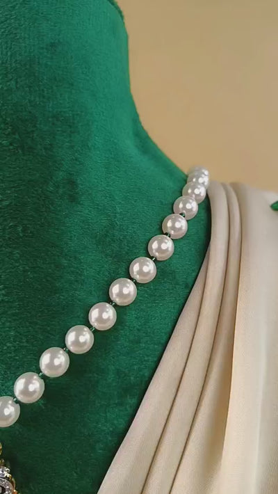 Handcrafted 22k gold plated mala adorned with emerald, Zircons and pearls.
