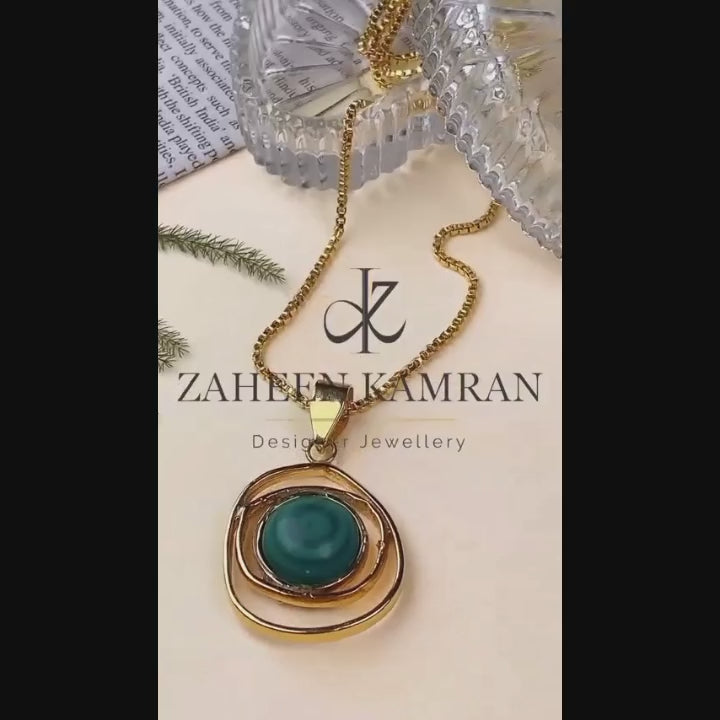 Handcrafted 22k gold plated pendant studded with lapis lazuli.