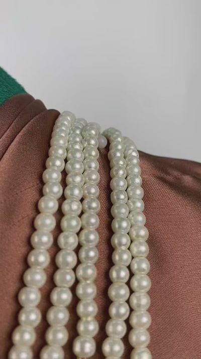 Handcrafted 22k gold plated mala adorned with emerald, smoky stones and pearls.