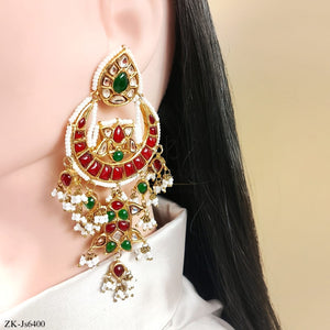 Handcrafted 22k gold plated mala studded with emerald, pink zirconia, kundan and pearls.