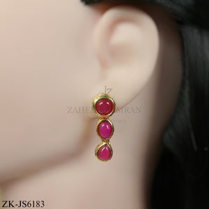 Handcrafted 22k gold plated choker alongside earrings adorned with ruby, kundan and pearls.