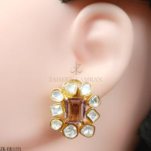 Handcrafted 22k gold plated earrings adorned with Sheesh and amethyst.