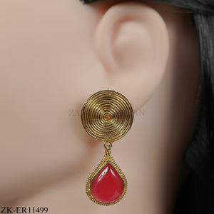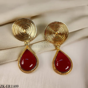 Handcrafted 22k gold plated earrings adorned with garnet.