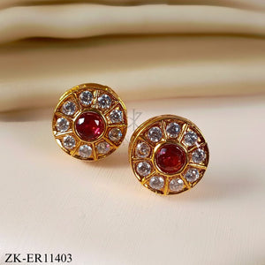 Handcrafted 22k gold plated earrings studded with ruby and zircons.