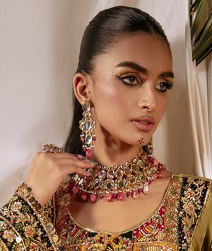 Gold Plated Fancy Oval Kundan Necklace Set studded with zircons