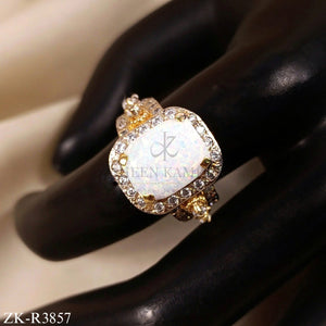 Product Overview: This ring features a bright white opal stone. The gold setting shines with tiny clear gems. The elegant design makes everyday wear feel special.