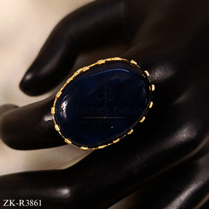 Product Overview: This ring features a large sapphire stone. The gold setting surrounds the stone beautifully. The oval stone shines on gold fingers. The design looks classic and elegant always. The ring shows rich craftsmanship and style. The gold frame holds the stone securely tight. The ring makes any outfit look luxurious.