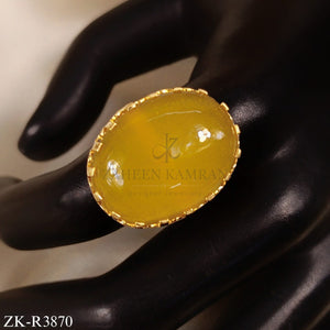 ° The ring uses bright yellow oval stone center.