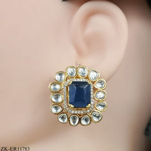 Handcrafted 22k gold plated earrings studded with sapphire, kundan and Zircons.