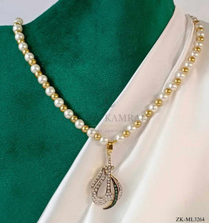 Handcrafted 22k gold plated mala studded with emerald, zircons, white and golden pearls.