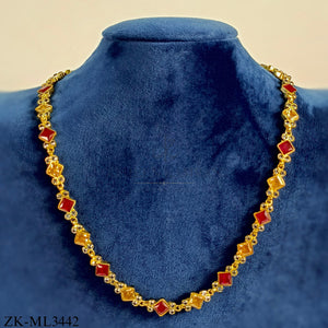 Handcrafted 22k gold plated mala studded with ruby, champagne and smoky stones.