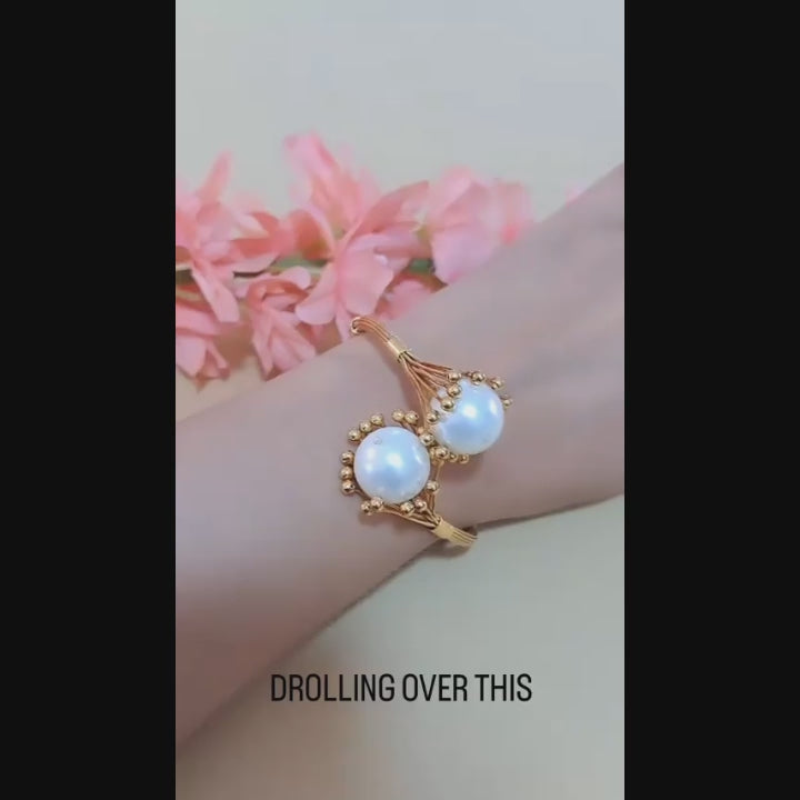 Handcrafted 22k gold plated bangle adorned with pearls.