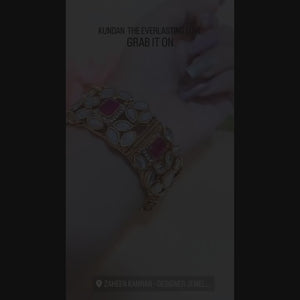 Handcrafted 22k gold plated bangle adorned with sheesh and ruby.