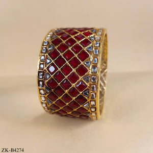 Handcrafted 22k gold plated bangles studded with ruby and kundan.