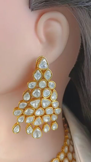 Handcrafted 22k gold plated necklace alongside earrings adorned with sheesh