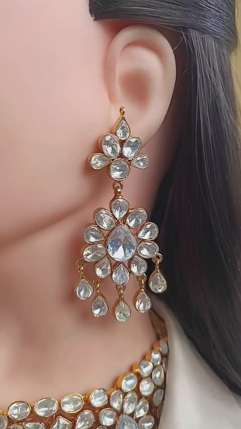 Handcrafted 22k gold plated necklace alongside earrings and tikka adorned with Sheesh.
