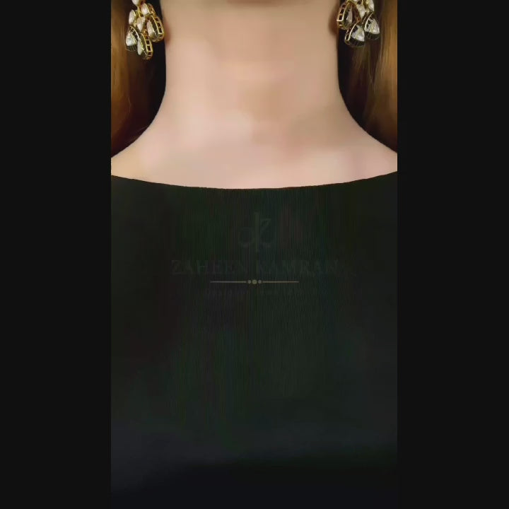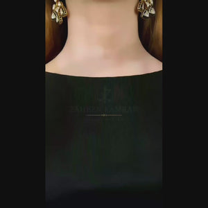 Handcrafted 22k gold plated necklace along with earrings adorned with sheesh and black meena.