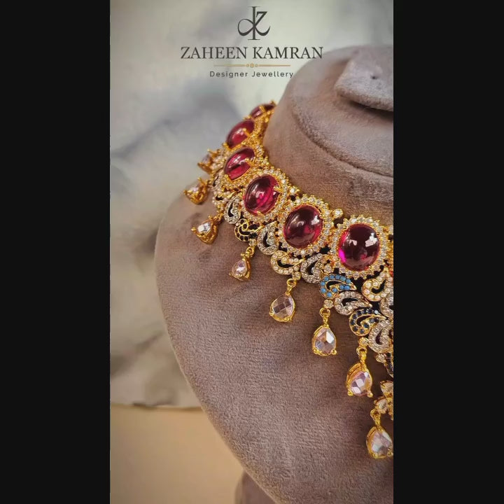 Gold Plated Stunning Ruby and Emerald Necklace Set