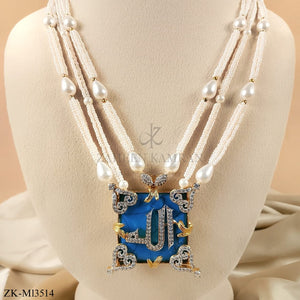 Handcrafted 22k gold plated mala studded with feroza, zircons and pearls.