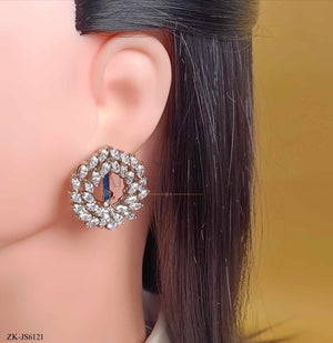 Handcrafted 22k gold plated choker alongside earrings studded with garnet and zircons.