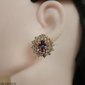 Handcrafted 22k gold plated earrings adorned with amethyst and zircons.