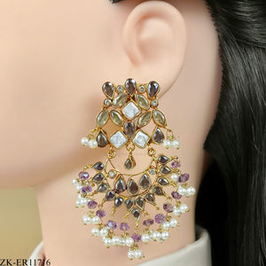Handcrafted 22k gold plated earrings adorned with amethyst and pearls.