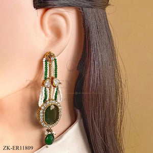 Handcrafted 22k gold plated earrings studded with emerald, zircons and pearls.