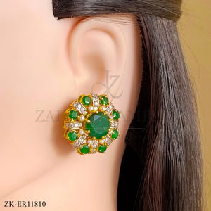 Handcrafted 22k gold plated earrings studded with emerald and zircons.