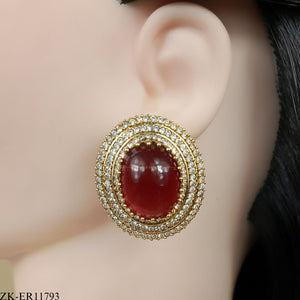 Handcrafted 22k gold plated earrings studded with garnet and zircons.