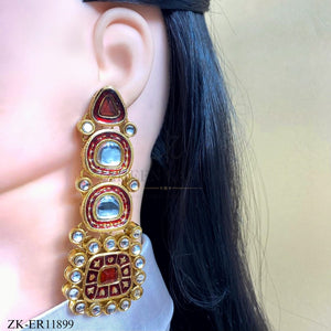 Handcrafted 22k gold plated earrings studded with garnet, kundan and red meena.