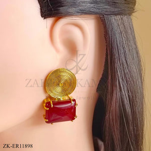 Handcrafted 22k gold plated earrings studded with garnet.