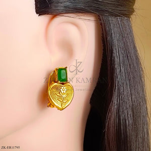 Handcrafted 22k gold plated earrings studded with pink zirconia and zircons.