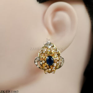 Handcrafted 22k gold plated earrings adorned with sapphire and zircons.
