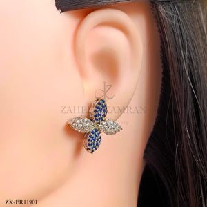 Handcrafted silver plated earrings studded with sapphire and zircons.