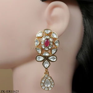 Handcrafted 22k gold plated earrings adorned with Sheesh and ruby.