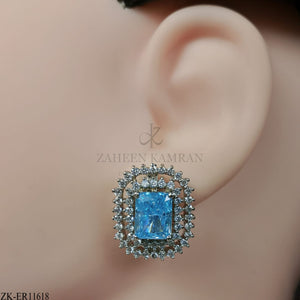 Handcrafted silver plated earrings adorned with sapphire and zircons.