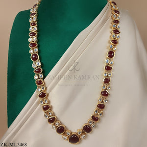 Handcrafted 22k gold plated mala adorned with garnet and kundan.