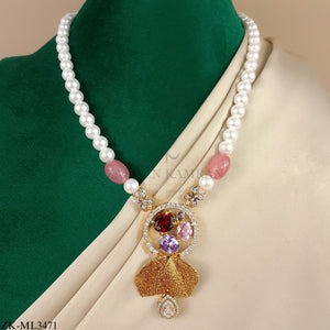 Handcrafted 22k gold plated mala adorned with amethyst, pink stones and pearls.