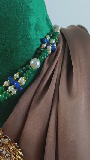 Handcrafted 22k gold plated mala studded with sheesh, sapphire, emerald and pearls.