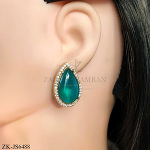 Handcrafted 22k gold plated choker alongside earrings studded with aqua stones and zircons.