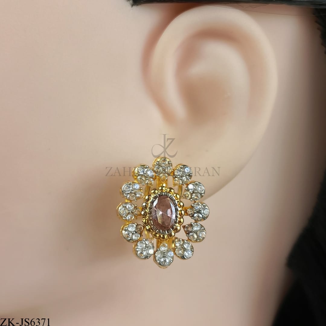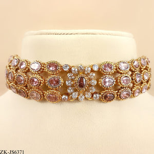 Handcrafted 22k gold plated choker alongside earrings studded with coffee stones and zircons.