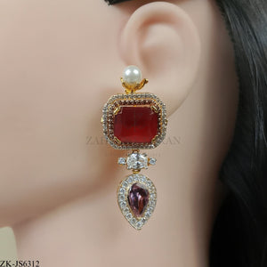 Handcrafted 22k gold plated necklace alongside earrings adorned with garnet, coffee stones, zircons and pearls.