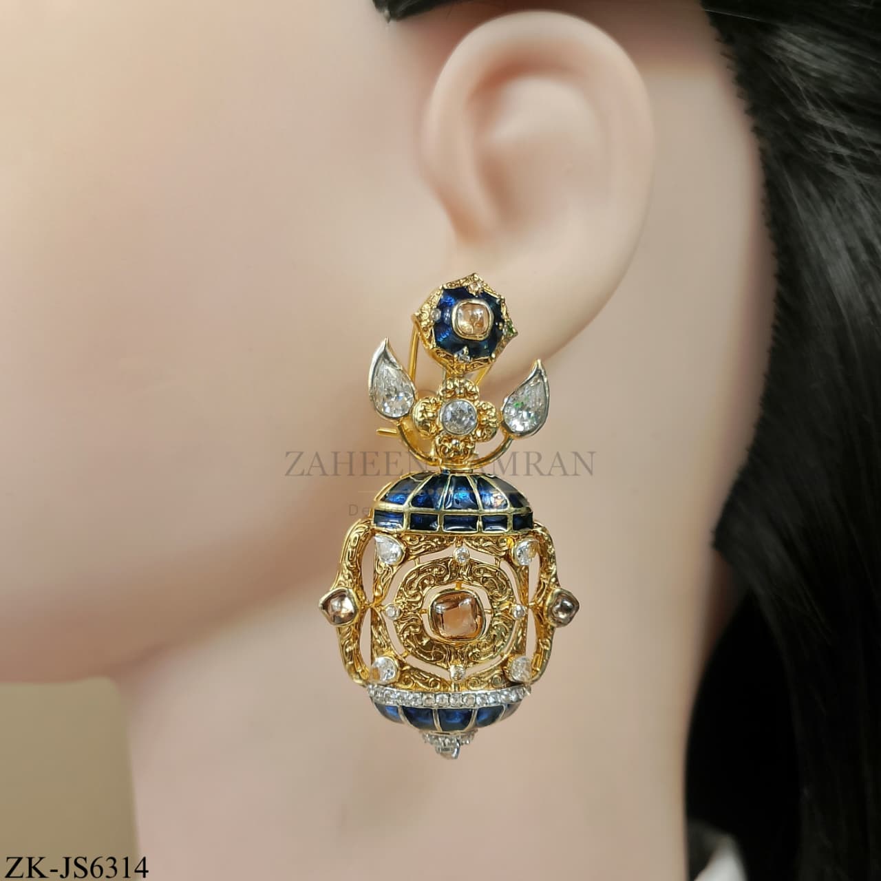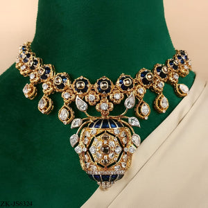 Handcrafted 22k gold plated necklace alongside earrings adorned with Sheesh, coffee stones and zircons.