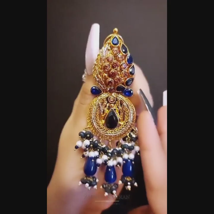 22 k gold plated kundan choker with chunky Earrings studded with seesh stones and feroza