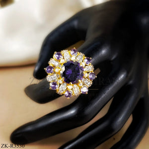 Handcrafted 22k gold plated ring studded with amethyst, zircons and pearls.