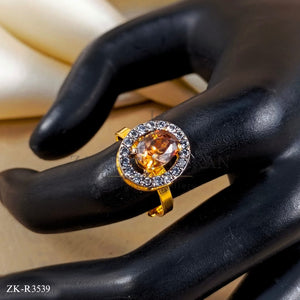 Handcrafted 22k gold plated ring studded with coffee stone and smoky stones.