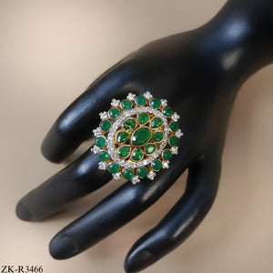 Handcrafted 22k gold plated ring adorned with emerald and zircons.
