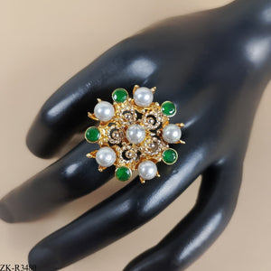 Handcrafted 22k gold plated ring adorned with emerald and pearls.