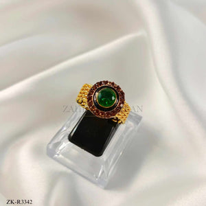 Handcrafted 22k gold plated ring studded with emerald and coffee stones.