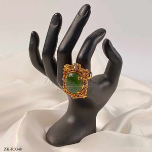 Handcrafted 22k gold plated ring studded with emerald and zircons.